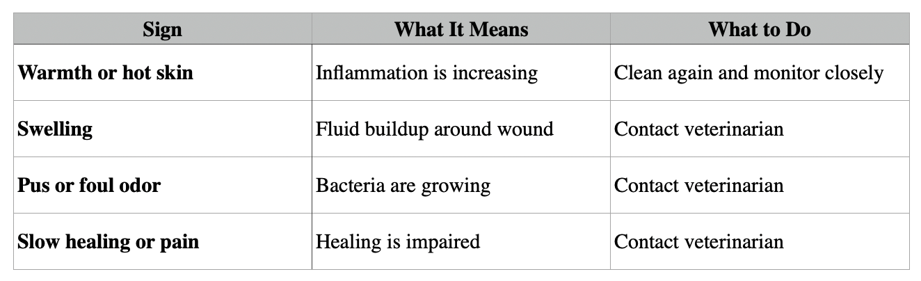 Some wounds take a wrong turn and become infected. Keep an eye out for: