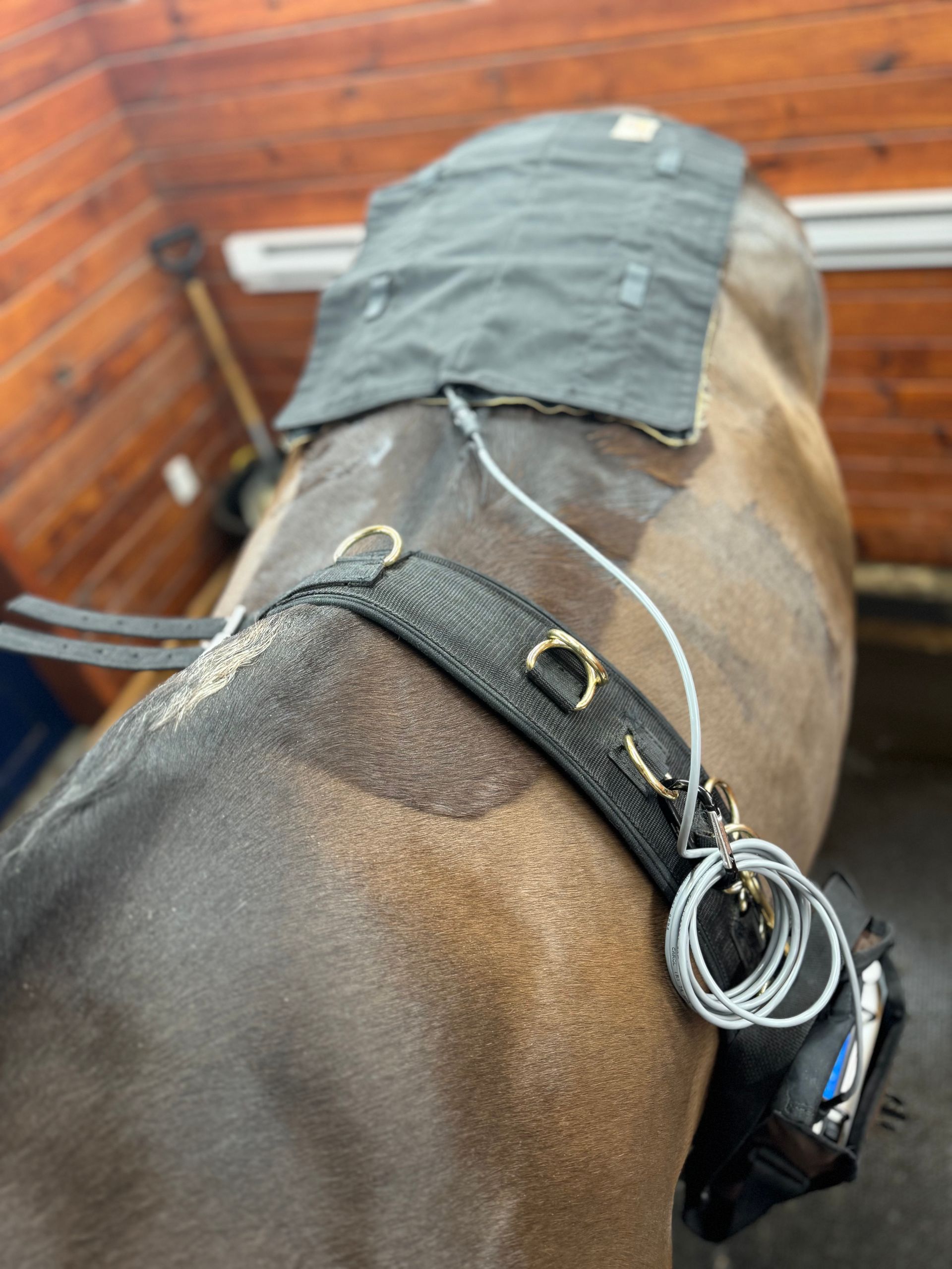 - Works large muscle groups without requiring movement, which is especially useful for horses out of work due to injury.