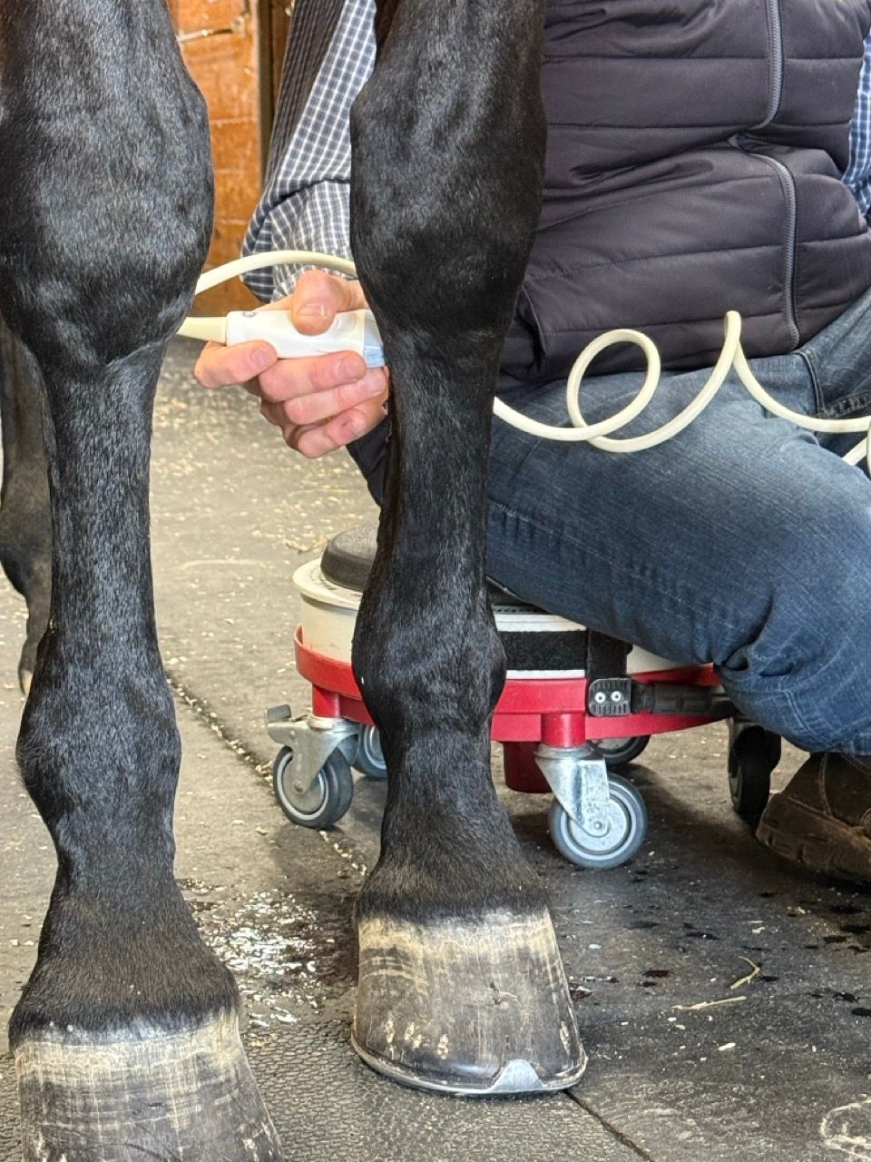 1. Accurate diagnosis: This means a detailed palpation examination, a through lameness examination and a high-quality ultrasound examination by our experienced practitioners. In some cases, we may suggest an MRI study for a more complete picture of the injury. This advanced diagnostic modality helps us to craft a more precise rehab plan and better prognosticate a horse’s return to sport.